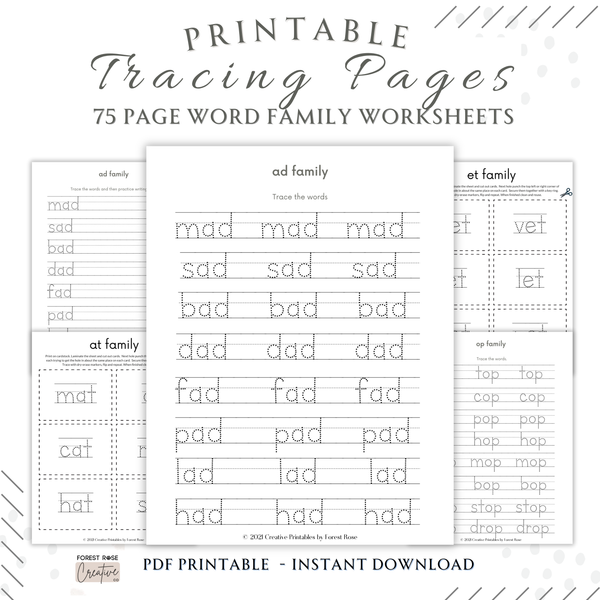 • Word Family Trace and Write Practice Sheets (25 pages)